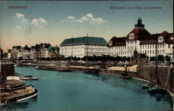 Ak Düsseldorf am Rhein, Rheinpartie vom Hafen aus