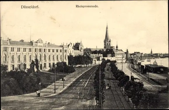 Ak Düsseldorf am Rhein, Rheinpromenade