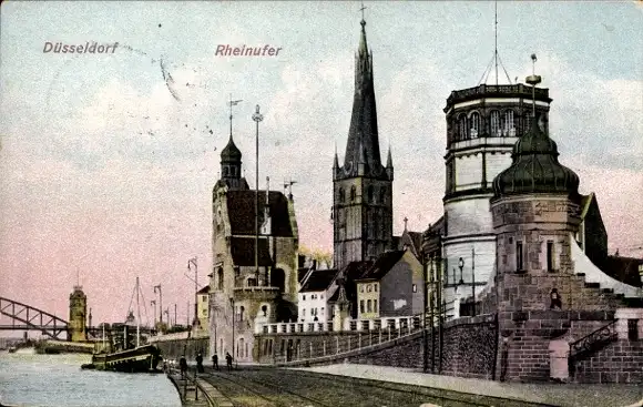 Ak Düsseldorf am Rhein, Rheinufer, Schiff