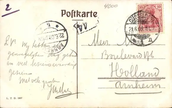 Zustand, siehe Scan, gelaufen, 1909 - ca 14 cm X 9 cm