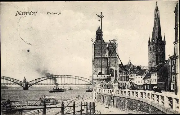 Ak Düsseldorf am Rhein, Rheinwerft, Brücke