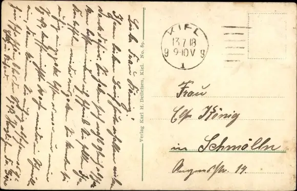 Zustand, siehe Scan, gelaufen, 1918 - ca 14 cm X 9 cm