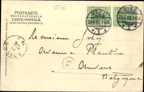 Zustand, siehe Scan, gelaufen, 1903 - ca 14 cm X 9 cm