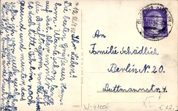 Zustand, siehe Scan, gelaufen, 1942 - ca 14 cm X 9 cm