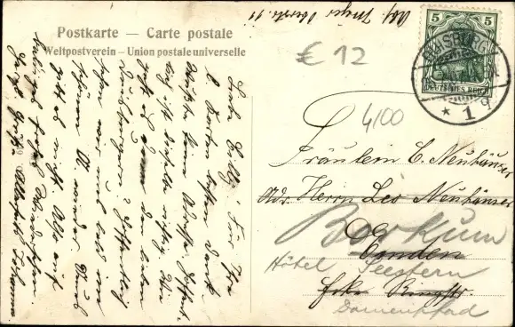 Zustand, siehe Scan, gelaufen, 1907 - ca 14 cm X 9 cm