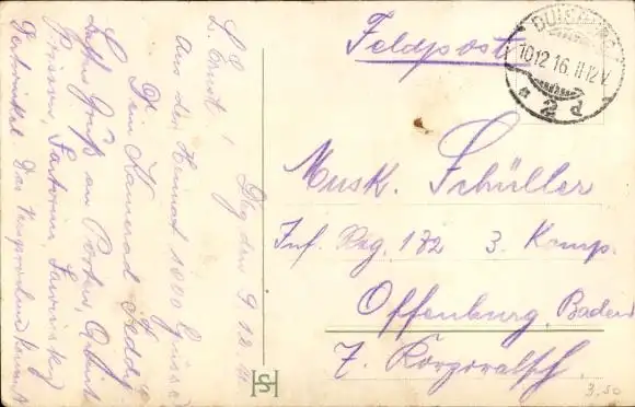 Zustand, siehe Scan, gelaufen, 1916 - ca 5 cm X 3 cm