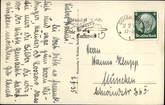 Zustand, siehe Scan, gelaufen, 1935 - ca 14 cm X 9 cm