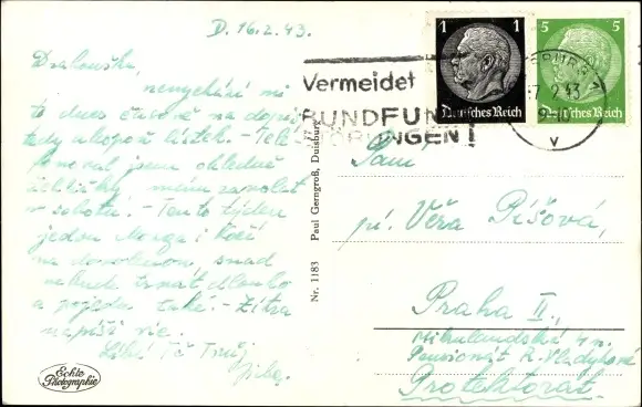 Zustand, siehe Scan, gelaufen, 1943 - ca 14 cm X 9 cm