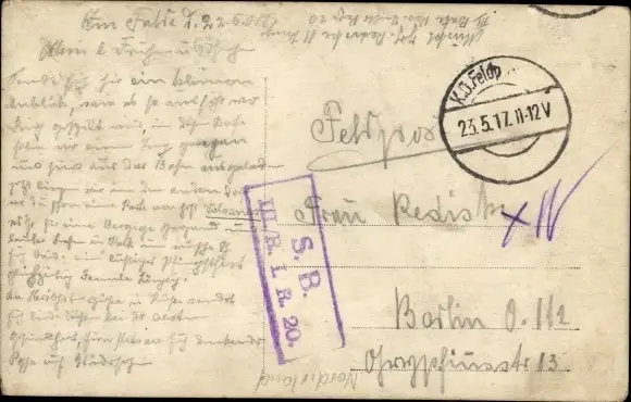 Zustand, siehe Scan, gelaufen, 1917 - ca 14 cm X 9 cm