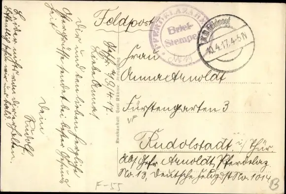 Zustand, siehe Scan, gelaufen, 1917 - ca 14 cm X 9 cm