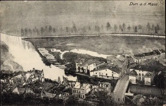 Ak Dun sur Meuse, Ortsansicht, Vogelschau,Ruinen, Kriegszerstörungen, I. WK