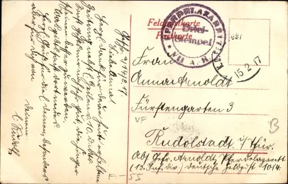Zustand, siehe Scan, gelaufen, 1917 - ca 14 cm X 9 cm