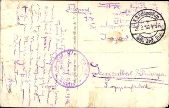 Zustand, siehe Scan, gelaufen, 1916 - ca 14 cm X 9 cm