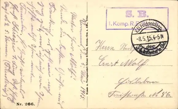 Zustand, siehe Scan, gelaufen, 1915 - ca 14 cm X 9 cm