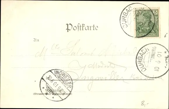 Zustand, siehe Scan, gelaufen, 1901 - ca 14 cm X 9 cm