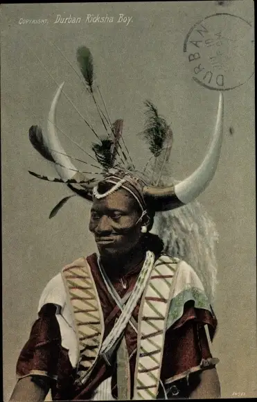 Ak Durban Südafrika, Ricksha Boy, Portrait