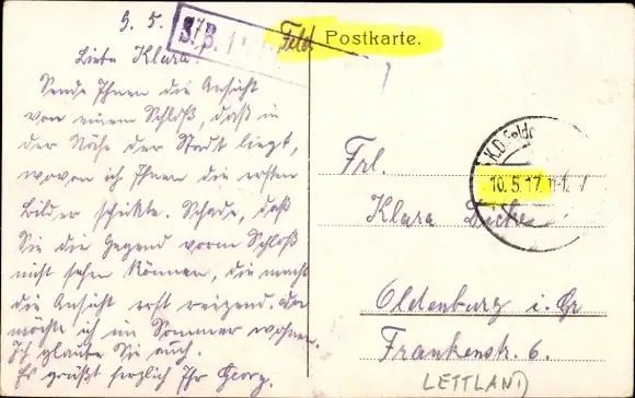 Zustand, siehe Scan, gelaufen, 1917 - ca 14 cm X 9 cm