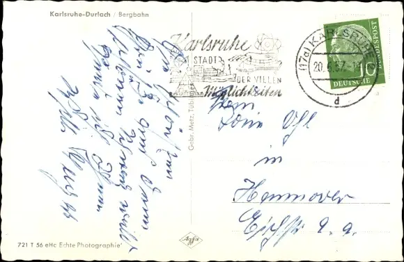 Zustand, siehe Scan, gelaufen, 1957 - ca 9 cm X 14 cm