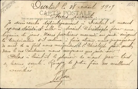ungelaufen, datiert 1919, Rückseite beschrieben, sehr guter Zustand