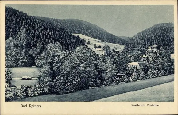 Ak Duszniki Zdrój Bad Reinerz Schlesien, Partie mit Fontaine