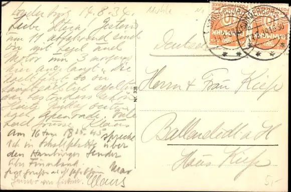 Zustand, siehe Scan, gelaufen, 1934 - ca 14 cm X 9 cm