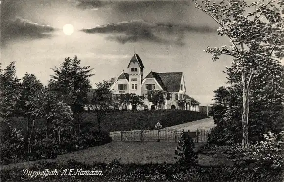 Ak Dybbøl Düppel Dänemark, Düppelhöh, A. E. Hamann, im Mondschein