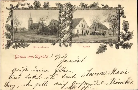 Ak Dyrotz Wustermark, Kirche, Amt, Gasthof