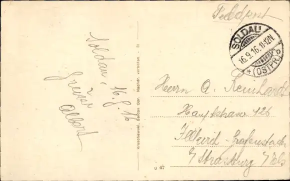 Zustand, siehe Scan, gelaufen, 1916 - ca 14 cm X 9 cm
