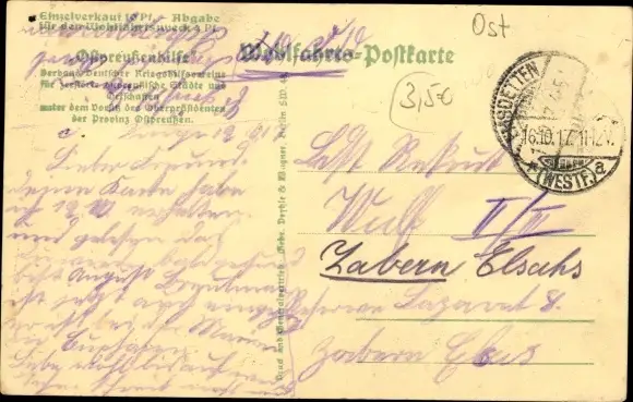 Zustand, siehe Scan, gelaufen, 1917 - ca 14 cm X 9 cm