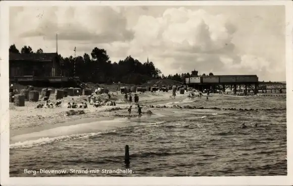 Ak Dziwnów Berg Dievenow in Pommern, Strand mit Strandhalle