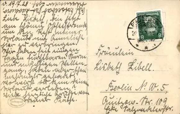Zustand, siehe Scan, gelaufen, 1928 - ca 14 cm X 9 cm