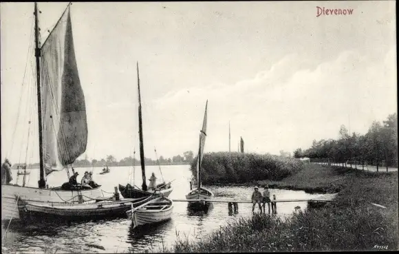 Ak Dziwnów Dievenow in Pommern, Segelboote an der Anlegestelle