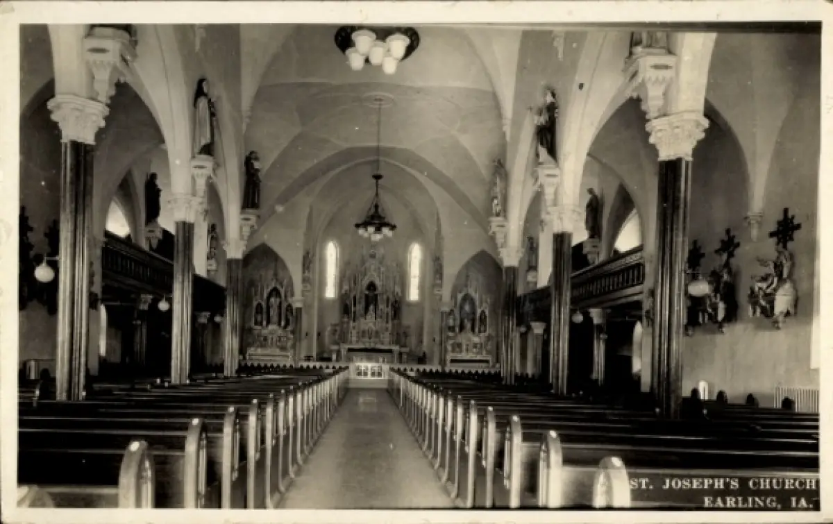 Ak Earling Iowa USA, St. Joseph Kirche, Innenansicht