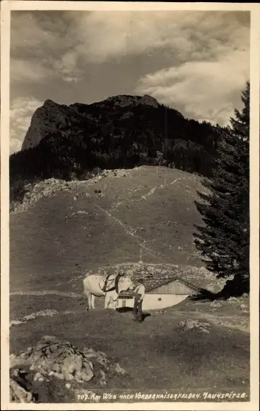 Ak Ebbs in Tirol, Am Weg nach Vorderkaiserfelden, Jaunspitze, Bauer, Rind