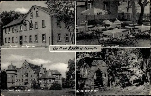 Ak Ebern in Unterfranken, Gasthof zur Specke, Schloss Eyrichshof, Ruine Rothenhan