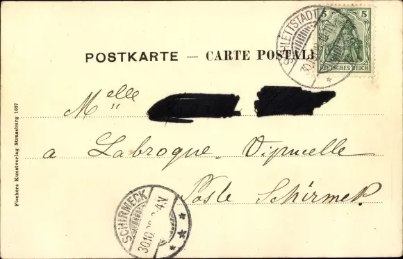 Zustand, siehe Scan, gelaufen- Inh. Joseph Kientz - ca 14 cm X 9 cm