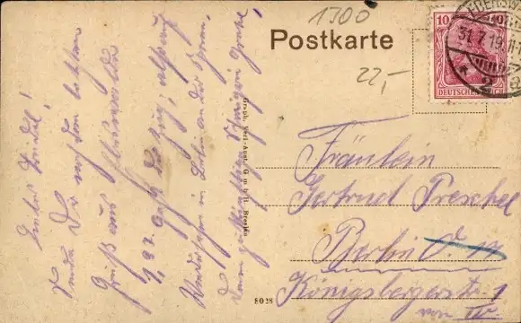 Zustand, siehe Scan, gelaufen, 1919 - ca 14 cm X 8 cm