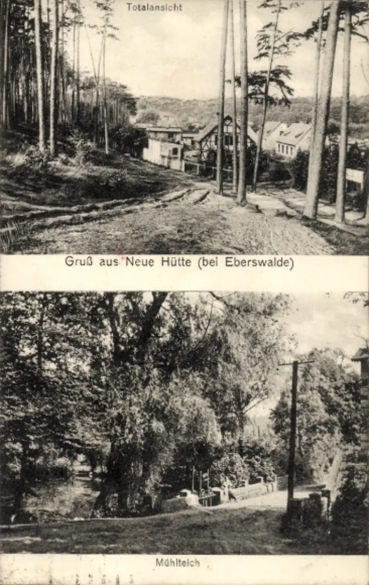 Ak Eberswalde, Forsthaus Bornemannspfuhl, Totalansicht, Gruß aus Neue Hütte, Mühltelch