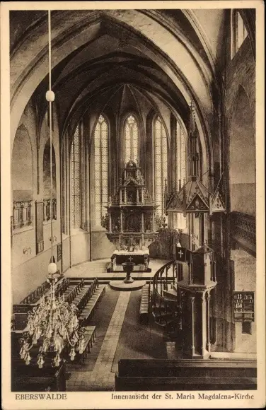 Ak Eberswalde im Kreis Barnim, Innenansicht der St. Maria Magdalena-Kirche, Altar, Kanzel