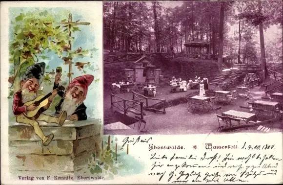 Ak Eberswalde im Kreis Barnim, Wasserfall Gasthaus, Garten, Zwerge