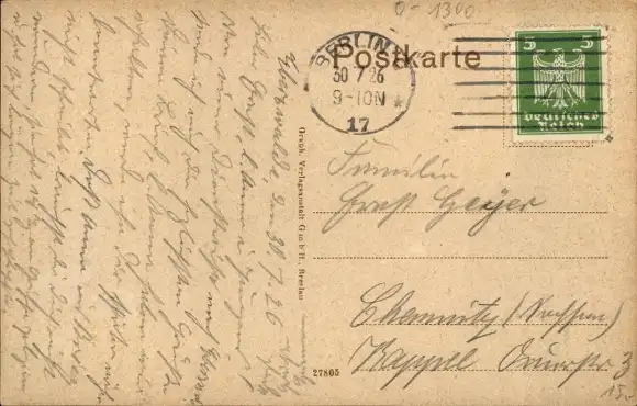 Zustand, siehe Scan, gelaufen, 1926 - ca 14 cm X 9 cm