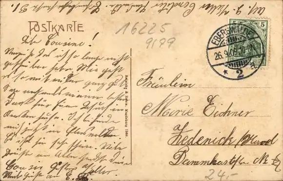 Zustand, siehe Scan, gelaufen, 1909 - ca 5 cm X 3 cm