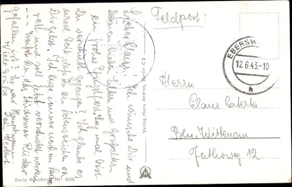 Zustand, siehe Scan, gelaufen, 1943 - ca 9 cm X 14 cm