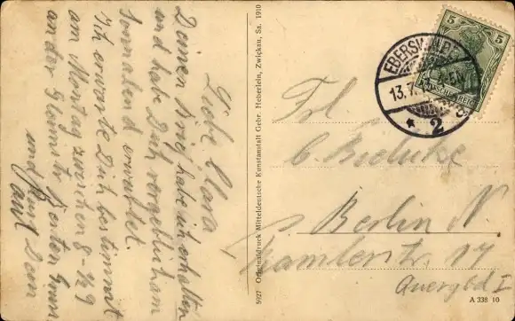 Zustand, siehe Scan, gelaufen, 1913 - ca 14 cm X 9 cm