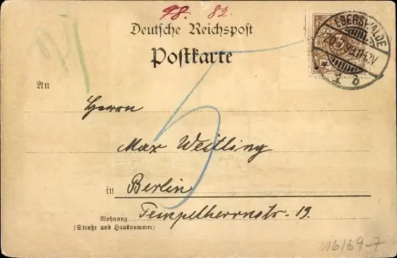 Zustand siehe Scan, gelaufen, 1898 - ca 14 cm X 9 cm