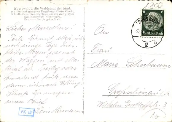 Zustand, siehe Scan, gelaufen, 1938 - ca 15 cm X 11 cm