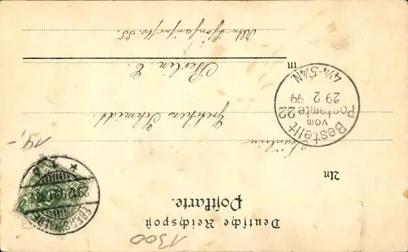 Zustand, siehe Scan, gelaufen, 1899 - ca 14 cm X 9 cm