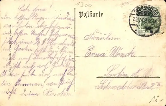 Zustand, siehe Scan, gelaufen, 1908 - ca 14 cm X 9 cm