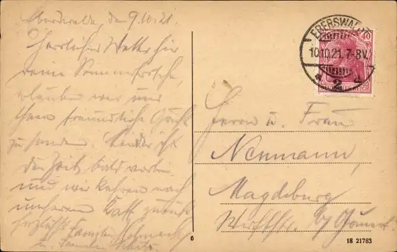 Zustand, siehe Scan, gelaufen, 1921 - ca 14 cm X 9 cm