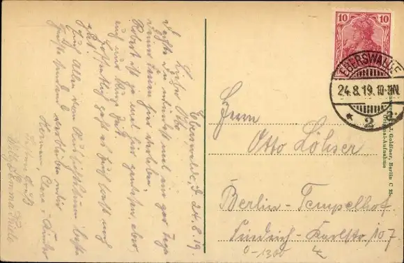 Zustand siehe Scan, gelaufen, 1919 - ca 14 cm X 9 cm